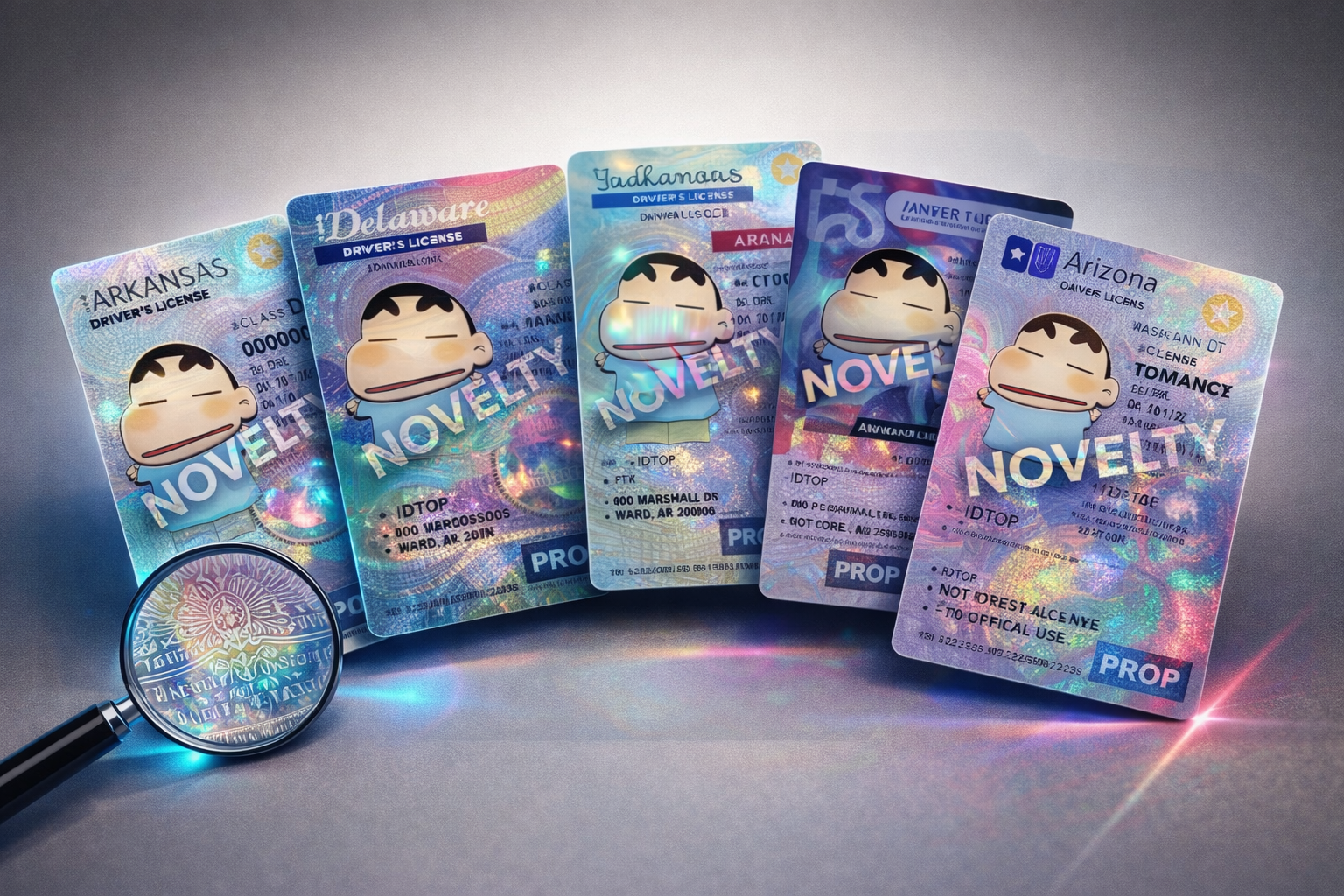 AI Summary: 2026 Novelty IDs are legal prop identification cards manufactured with 600+ DPI printing, polycarbonate overlays, and UV security features. Designed for film production, photography, and collectibles, they feature permanent "NOVELTY" markings ensuring 100% compliance for non-official use under U.S. federal prop regulations.